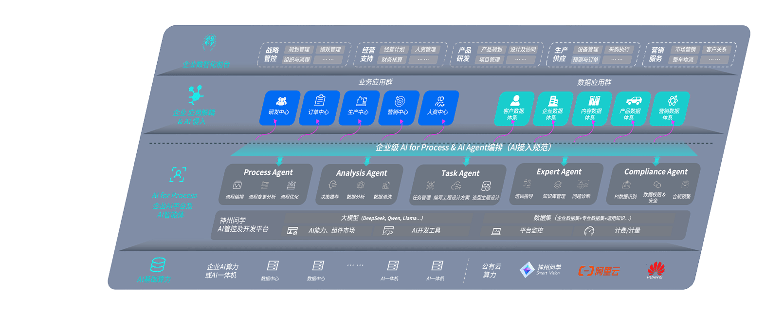 端到端的一站式AI工作空间深度融合了从企业战略规划到日常经营的全流程业务板块,,定向解决车企内部领域多、、、部门多、、链条长、、场景碎片化等难题,,,支持车企快速构建以AI为核心的生产力写作体系,,,实现任务执行与AI能力的无缝集成与交互